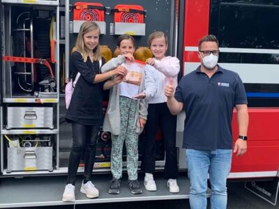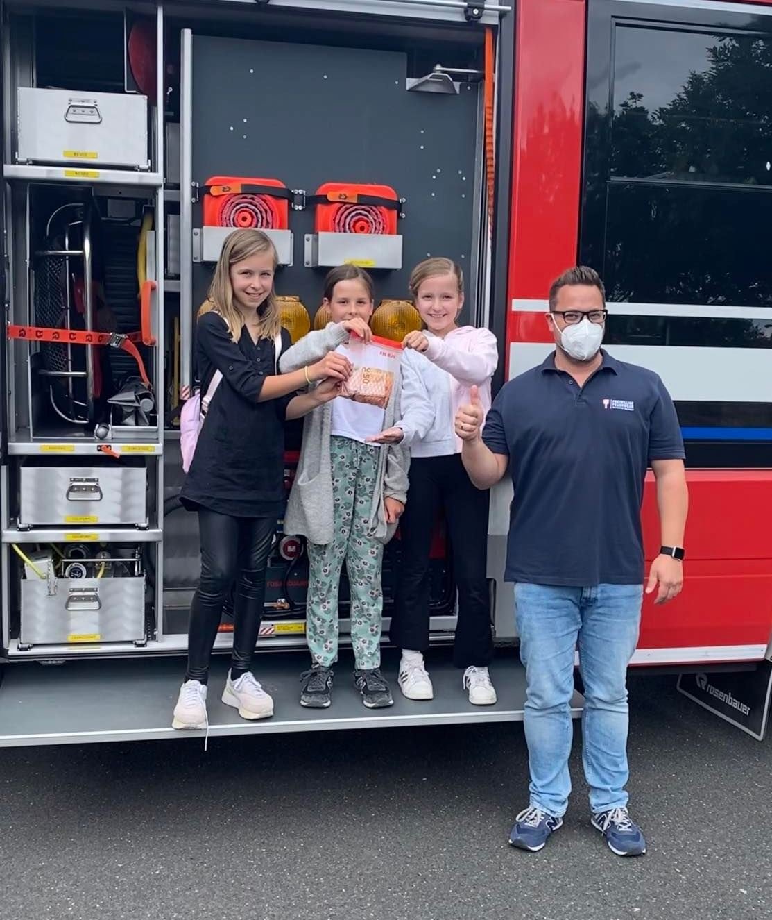 Heute haben uns Mia Bösing, Greta Marder und Lucie Gatermann (von links) besucht. Die drei Mädels überbrachten uns eine Geldspende für die Ukrainehilfe der Nauheimer Feuerwehrfrauen und -männer.