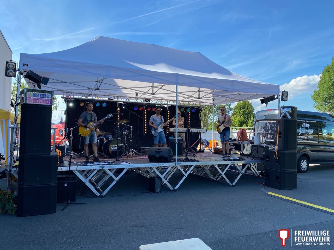 Den Abschluss dieser Woche, bildete das Konzert der Cover-Band Tschau Johnny! aus dem benachbarten Nierstein. Im Rahmen des Nauheimer Kultursommers, der aus der Reihe „Live im Hof“ hervorgegangen ist, trat die Band auf dem Hof des Feuerwehrhauses auf. Über 200 Besucher ließen den Abend gemeinsam mit der ausrichtenden Feuerwehr ausklingen. An dieser Stelle möchten wir uns auch für die Unterstützung all dieser Veranstaltungen durch die Gemeindeverwaltung, die Kolleginnen und Kollegen des Bauhofs und allen unseren Freunden und Unterstützern bedanken!
