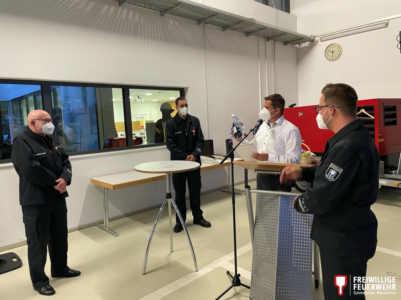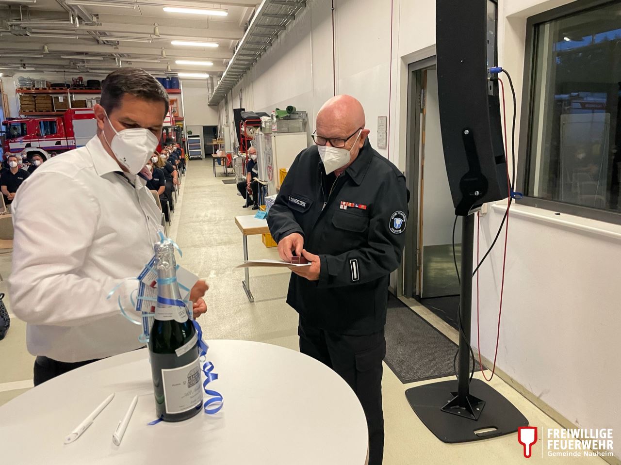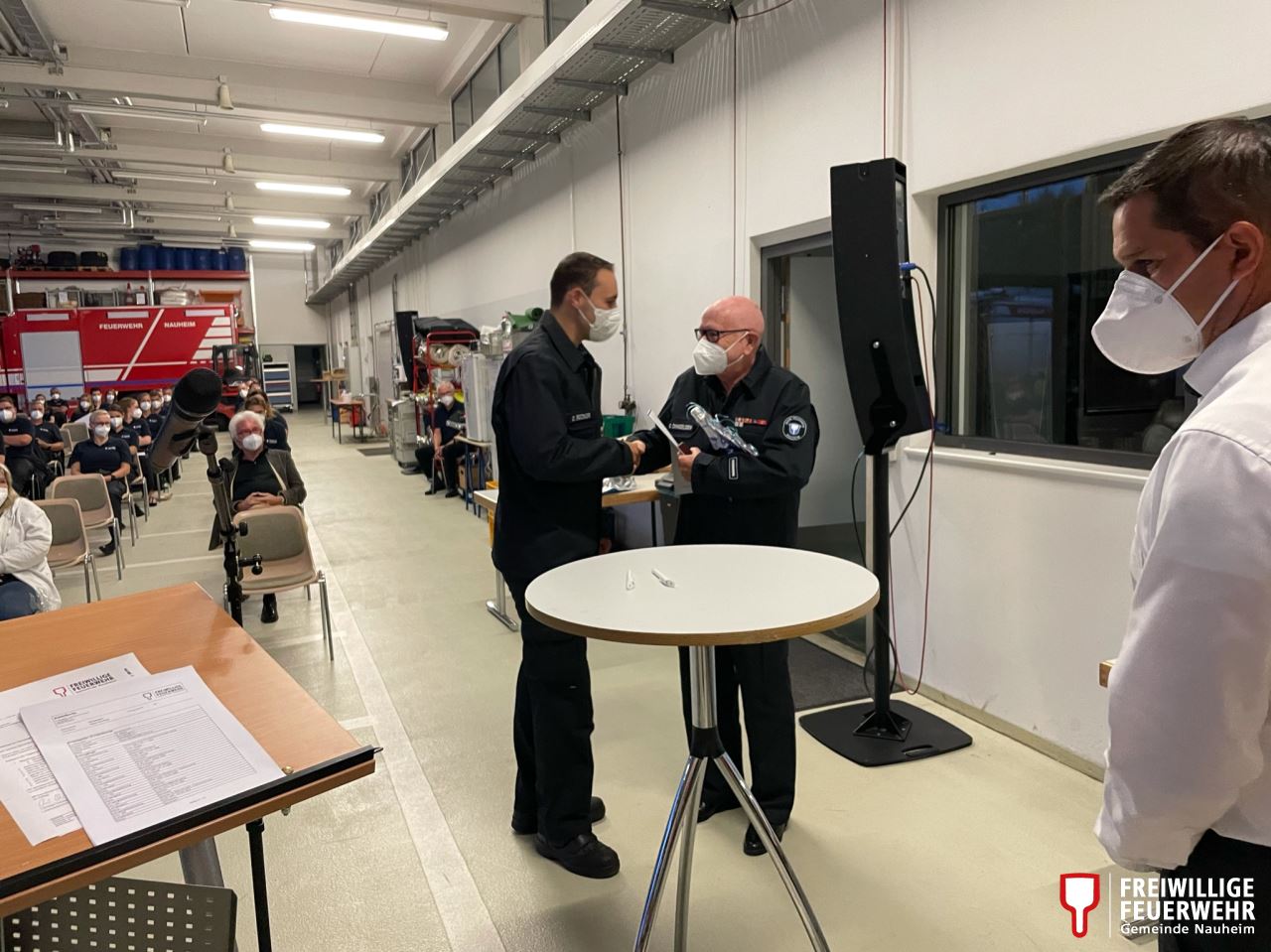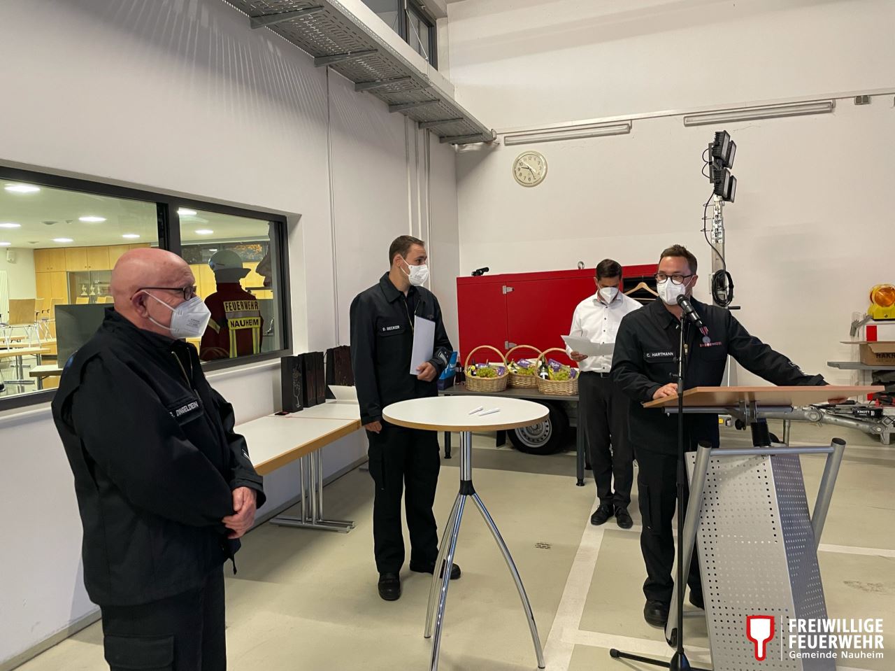 Aufgrund eines Einsatzes in Gernsheim musste Möstl die Versammlung kurz nach seinem Grußwort schon wieder verlassen. Das Nauheimer Gefahrgut-Messfahrzeug folgte nach dem Alarm für die Feuerwehr Nauheim kurze Zeit später.