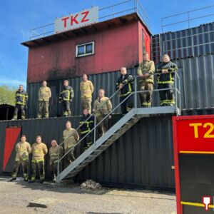 Gemeinsam mit unseren Kamerad*innen aus Nauheim ging es am 14. Mai 2022 nach Nordrhein-Westfalen in das Trainings- und Kompetenzzentrum für Brandbekämpfung und technische Hilfeleistung. In der sogenannten „Heißausbildung“ trainierten unsere Einsatzkräfte die Brandbekämpfung unter realistischen Bedingungen.