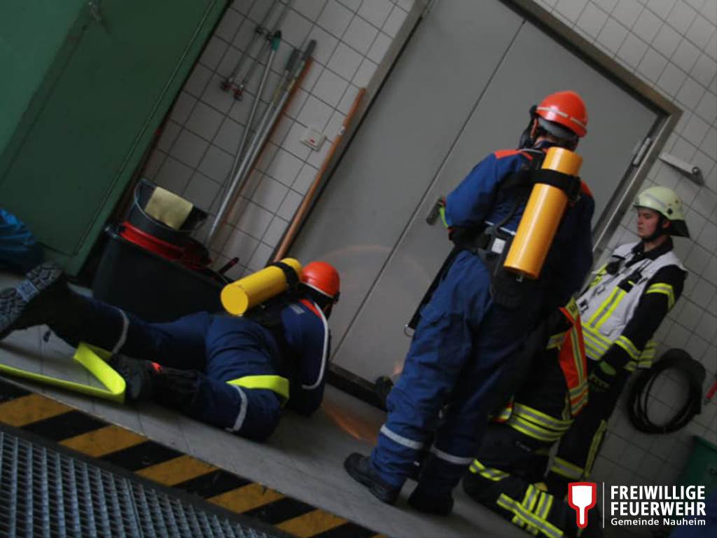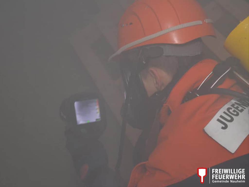So wurden dann auch entsprechende Suchstrategien und Vorgehensweisen entwickelt und eine praktische Atemschutzübung geplant. Mit selbstgebauten Atemschutzgeräten (leichtgewichtige Exemplare für Kinder und Jugendliche) und ausgerüstet mit einer Wärmebildkamera, konnte der Nachwuchs abschließend eine spannende Übungsstrecke absolvieren.
