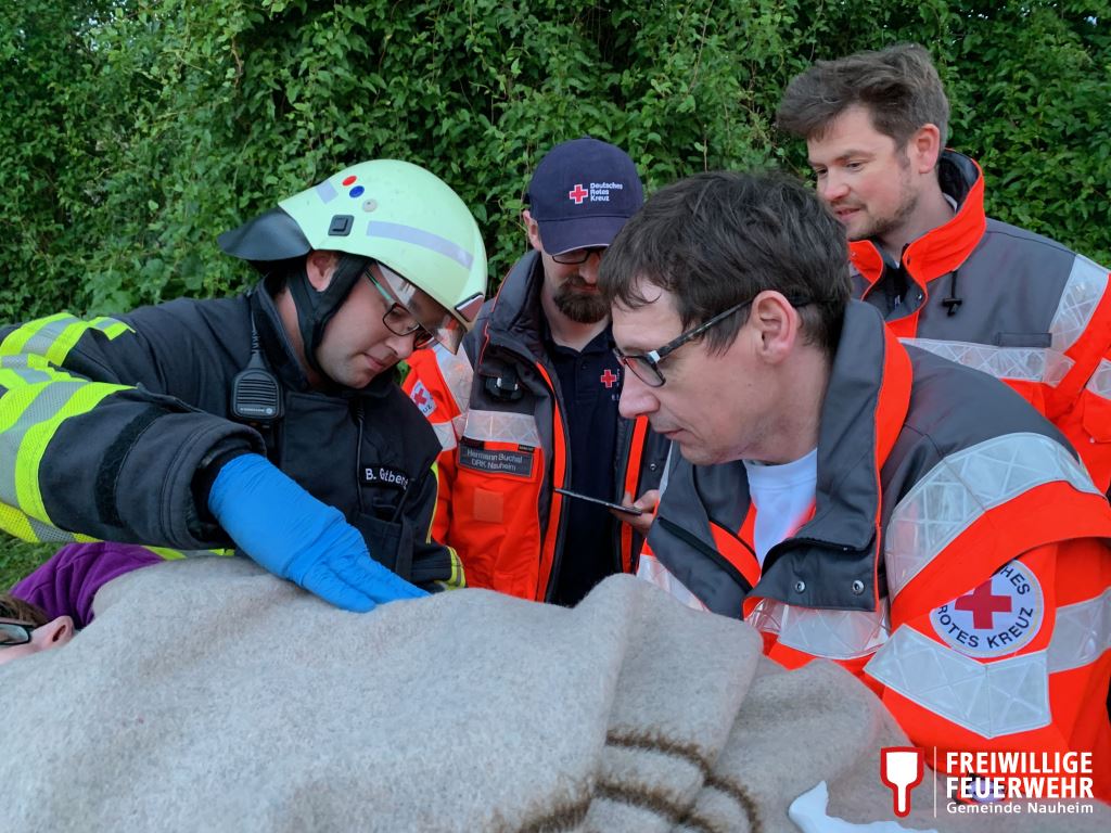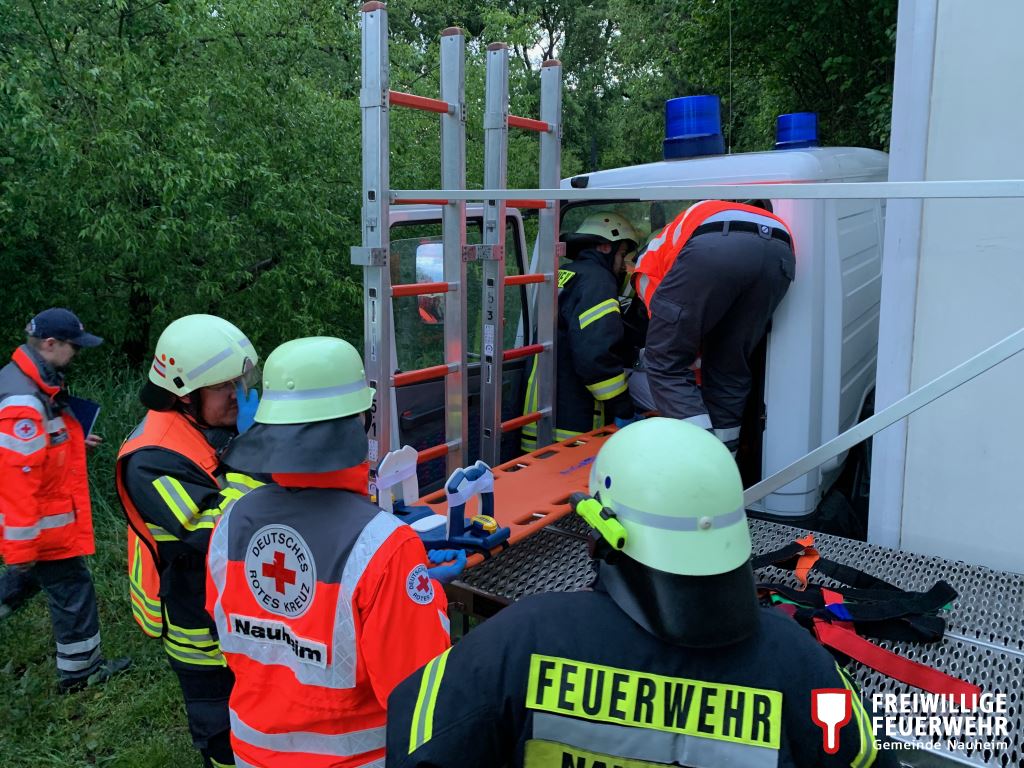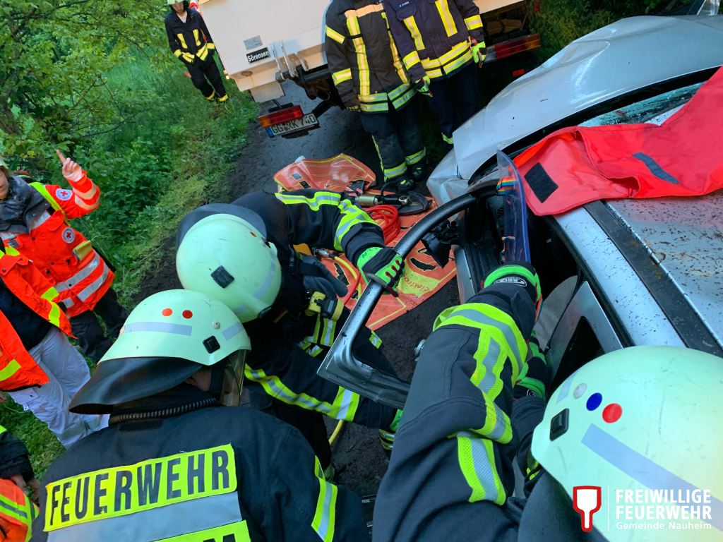 Am 09. Mai 2019 übte die Feuerwehr Nauheim, anlässlich ihres wöchentlichen Übungsdienstes, zusammen mit dem DRK OV Nauheim und dem Rettungsdienst des Kreises Groß-Gerau das gemeinsame Vorgehen bei einem Verkehrsunfall.