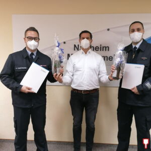 „Wir haben in den letzten Jahren viel erlebt. Sturmereignisse, die Corona-Pandemie oder andere Gefahrensituationen stellen die Einsatzabteilung der Nauheimer Feuerwehr immer wieder vor große Herausforderungen. Umso glücklicher bin ich darüber, dass Sie beide als Führungsduo für eine verlässliche und starke Truppe zum Schutz unserer Bürgerinnen und Bürger verantwortlich zeichnen, auf die wir uns verlassen können. Hierfür sage ich von ganzem Herzen: Dankeschön“, würdigte Bürgermeister Jan Fischer bei der Urkundenübergabe das Engagement von Hartmann und Becker.