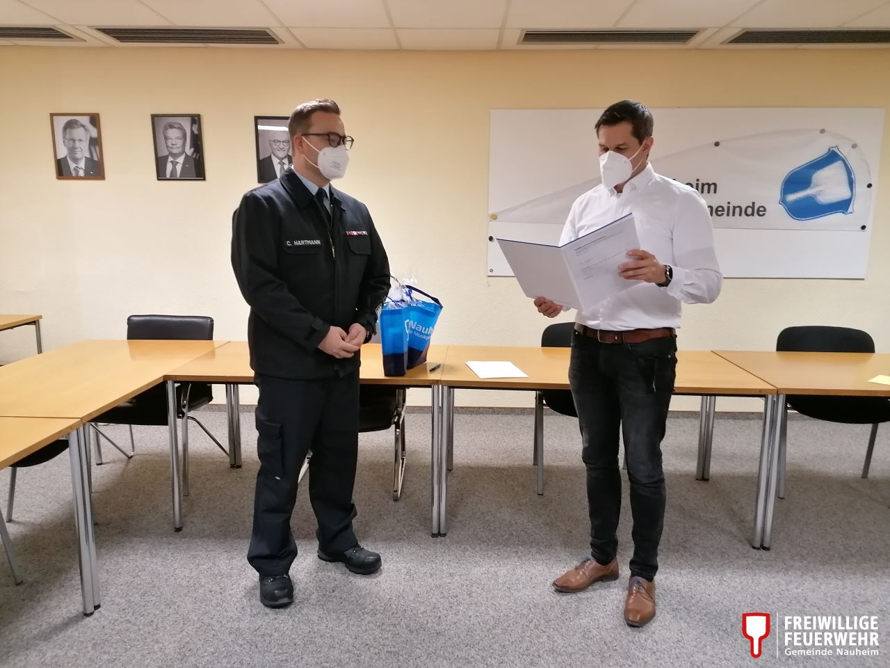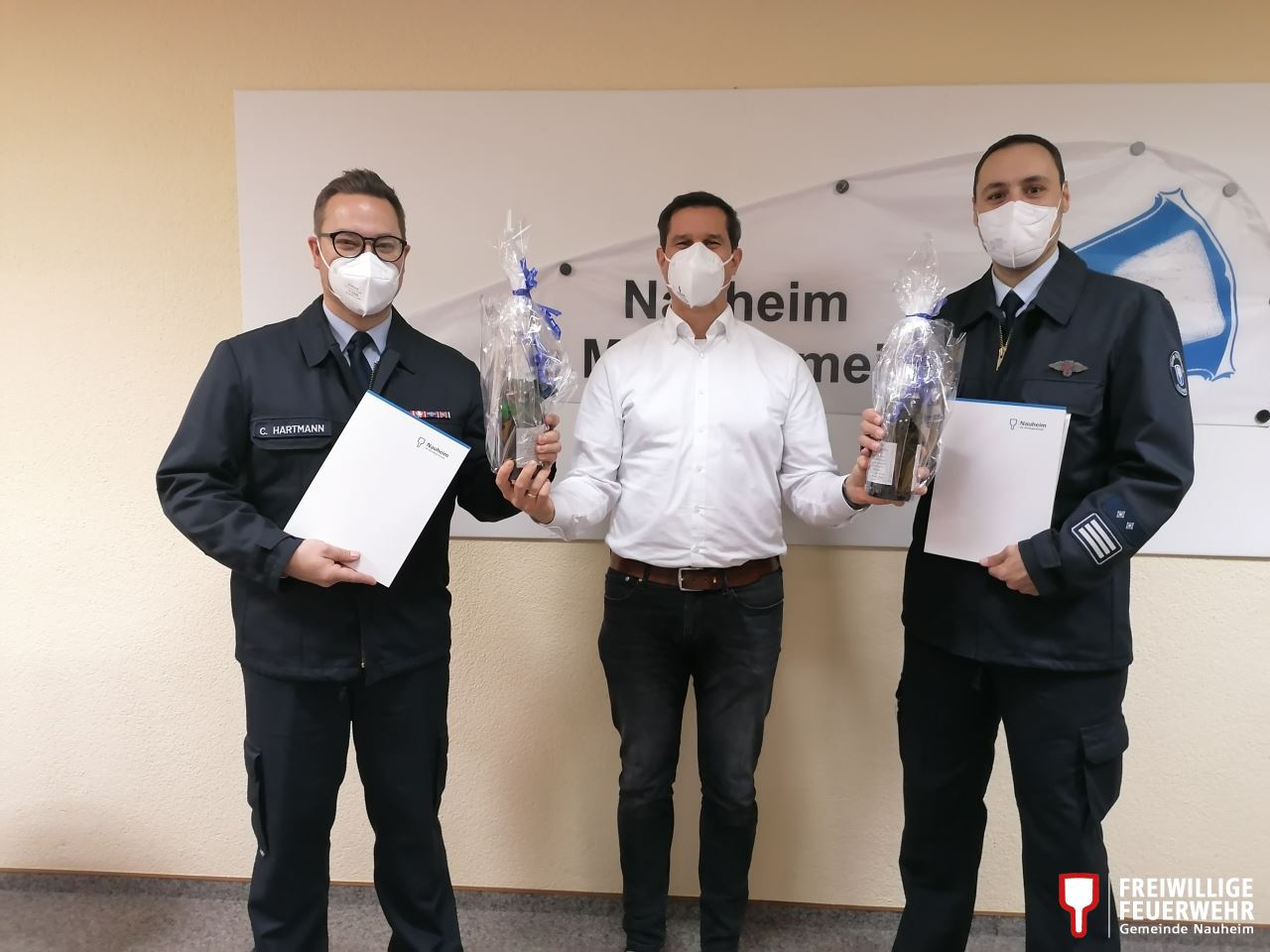 Bereits im Sommer waren Christian Hartmann und Daniel Becker im Rahmen einer Dienstversammlung der Freiwilligen Feuerwehr Nauheim in ihren Ämtern als Gemeindebrandinspektor (GBI) und stellvertretendem GBI bestätigt worden. Nun übergab Bürgermeister Jan Fischer auch die offizielle Ernennungsurkunde der Gemeinde an das Duo.