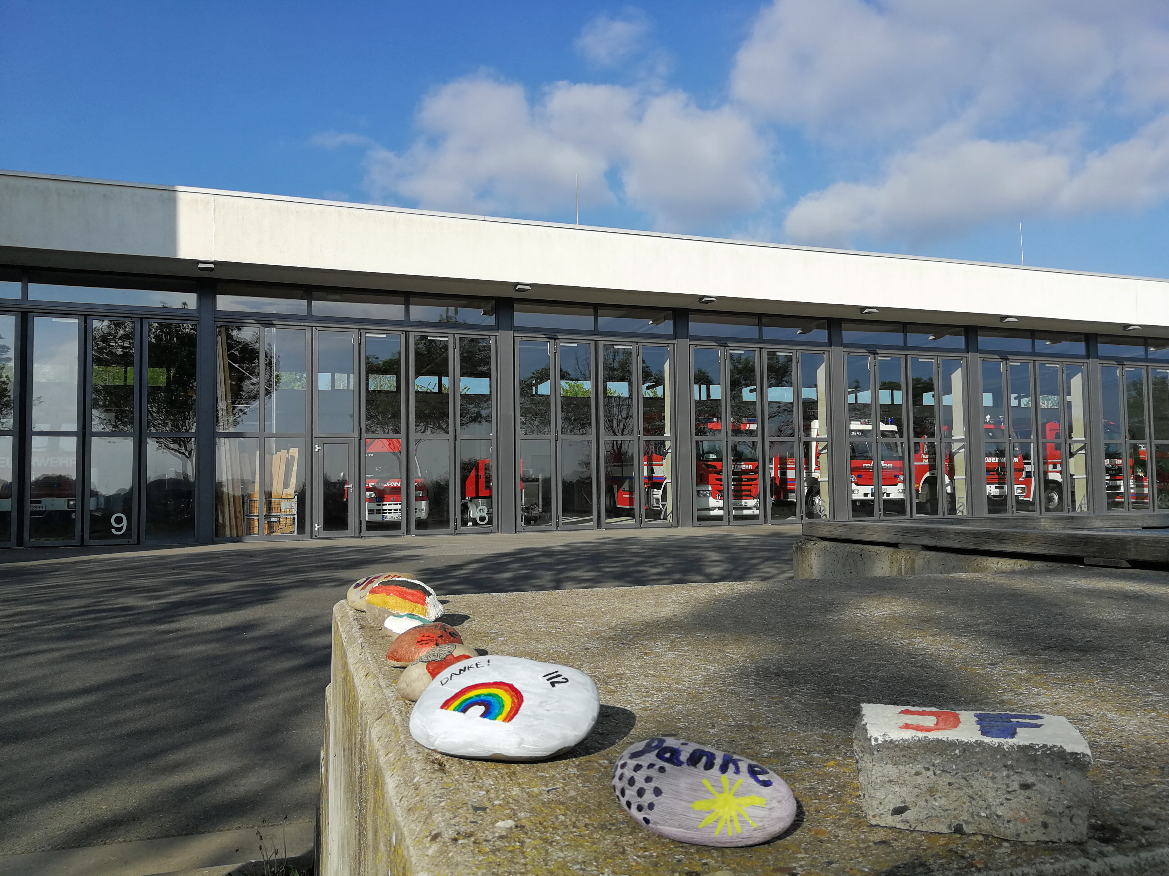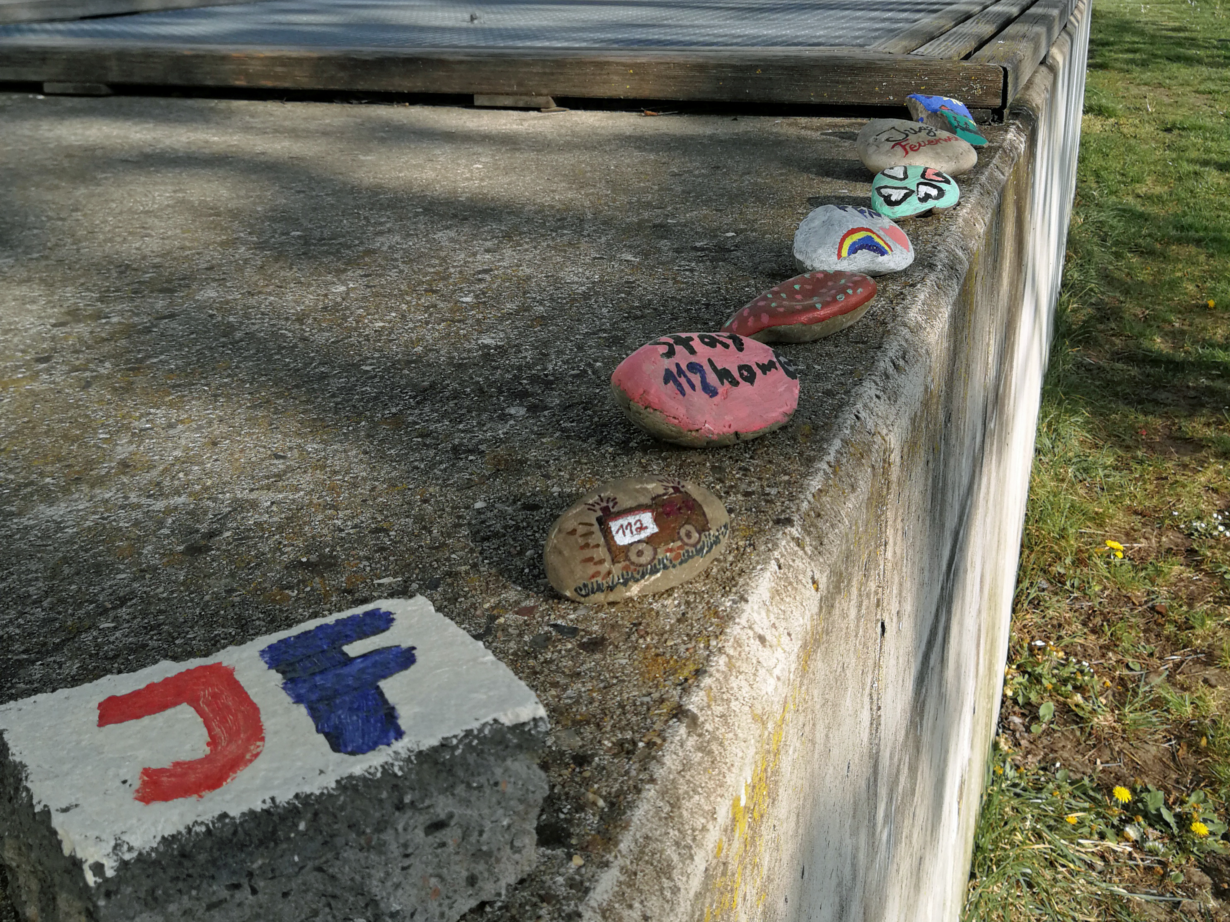 Ein bisschen Hoffnung ? spenden sollen sie und natürlich auch für Beschäftigung der Kids sorgen. Im Bereich des Pumpenprüfbeckens am Friedel-Scherer-Feuerwehrhaus findet ihr einige Steine, die die Kinder aus der Jugendfeuerwehr bemalt haben.